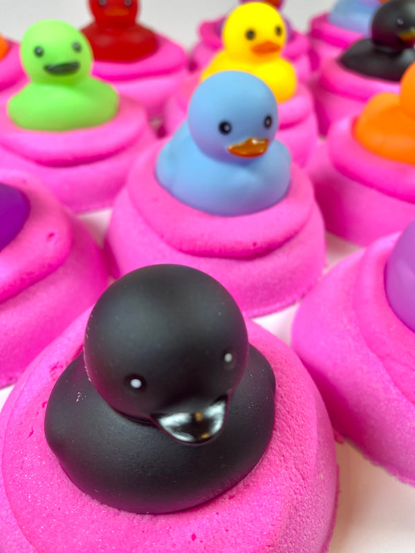 Our bath bombs are not just your average fizzers; they’re handpainted and airbrushed masterpieces that bring a pop of colour and a dash of joy to your bath. We’ve got everything from the hilariously themed Bag of Richards Mini Bath Bombs (because who doesn’t love a good chuckle while soaking?) to our innovative Duckie Bath Bomb Opener, which makes getting your fizz on as easy as pie (or should we say, as easy as a rubber ducky?).